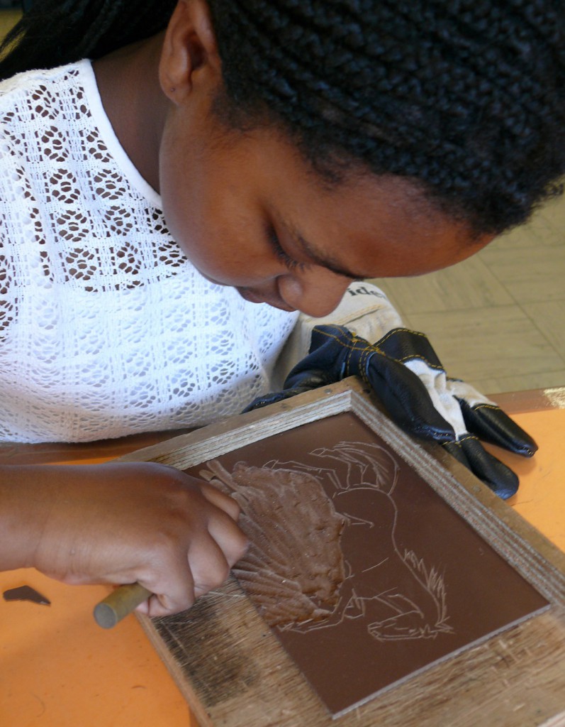 Dessine et grave avec une pointe sèche sur une plaque un dessin que tu imprimeras à l’aide d’une presse sur un beau papier.